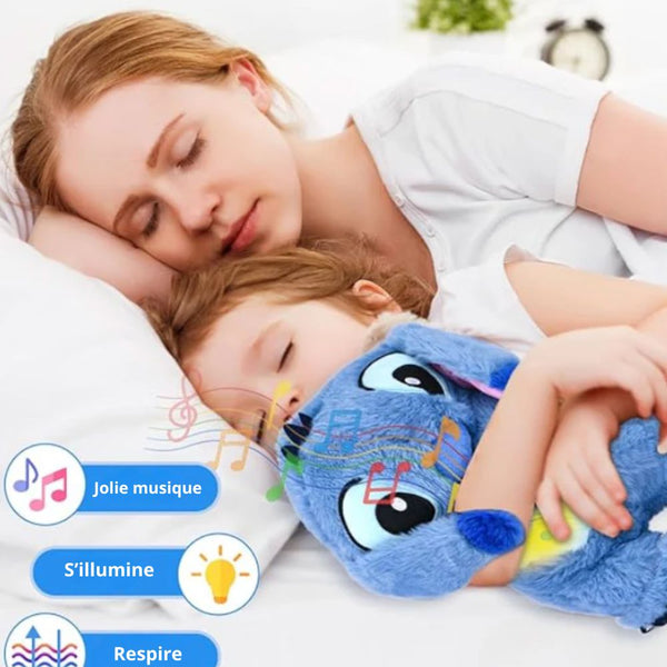 Avec des sons apaisants et une lumière douce, notre peluche dissipe le stress et aide à retrouver un sommeil réparateur.